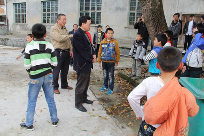 在罗坊中心幼儿园,李校长一行详细了解了当地农村留守儿童的人数、生活、教育情况,以及我校实习支教学生的教育实践活动情况,并走进实习支教学生宿舍,关心他们的生活起居。李校长指出,罗坊中心幼儿园曾经因为缺乏师资而停办,当地学生不得不到农村托管式的私立幼儿园上学。由于我们支教学生的到来,学校得以重新开办,今天看到这么多幸福的孩子在这里上学,我内心感到非常欣慰。教育是一项爱心工程,对农村留守儿童的爱没有起点,也没有终点。他勉励大家要尽自己所能,关爱农村留守儿童。李校长表示我校将结合实习支教工作,开拓创新实验区内涵建设,通过一系列措施,与实习支教学校共同关爱农村留守儿童的健康成长。