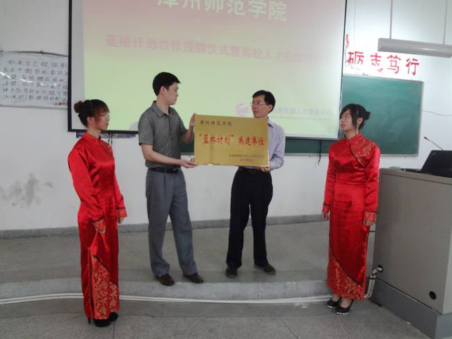 4月12日,我校计算机系和国家工信部人才交流中心共建实施的“蓝桥计划”在砺志楼215教室举行揭牌仪式,该仪式标志着我校正式成为“蓝桥计划”的试点单位。国家工信部蓝桥计划办公室张禾生副主任,计算机系党总支书记林梦雷、副主任黄如芬、副书记李苗等班子成员和部分师生参加了揭牌仪式。