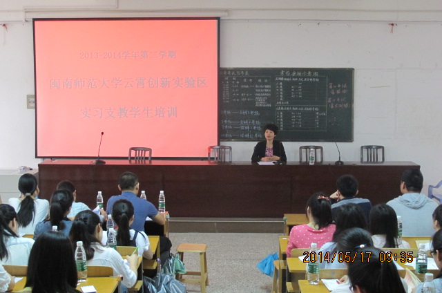 5月17日,云霄创新实验区实习支教学生教学技能培训在云霄元光中学梯形教室举行。本次培训是由云霄县教育局和教师进修学校联合举办,参加对象为我校2014上半年在云霄县实习支教的94名师范生。