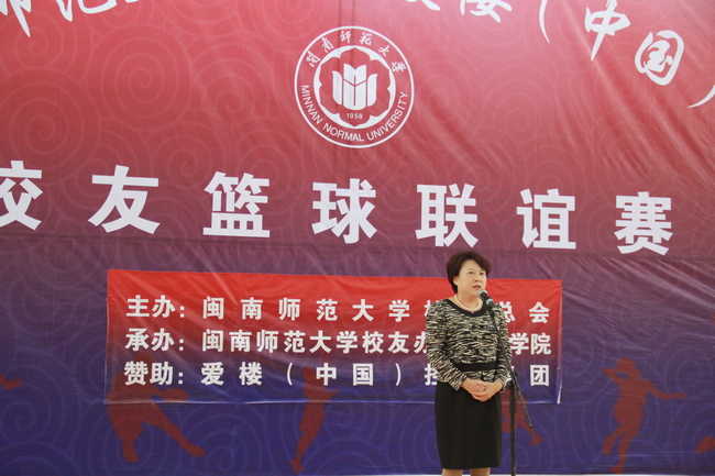 蒋一婷副校长代表母校向校友们的回归表示热烈的欢迎,她介绍了我校近年来校友工作的开展情况,指出在广大校友的热心支持下母校校友工作取得可喜的成绩。本次篮球联谊赛是一个很好交流平台,对于加强母校与各地校友会的沟通与联系,促进各地校友会及校友之间的合作与交流,增进校友情谊,营造我校良好温馨的校友氛围具有重要作用。最后,她希望各校友队能在比赛中赛出风格,赛出水平,并衷心祝愿本次校友篮球联谊赛能够圆满成功。
