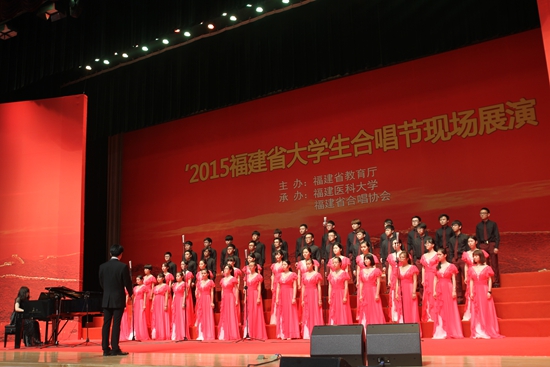 今年3月到5月,由福建省教育厅主办,福建省合唱协会承办的“纪念抗日战争胜利70周年合唱活动”在全省各级各类学校广泛开展,共有60余所高校120个节目参加合唱光盘评选活动。我校积极参加此次合唱光盘评选活动,校团委充分做好前期的节目遴选、宣传录制、彩排后勤保障等工作;艺术学院师生,不辞辛苦,加班加点排练,不断提升节目质量。最终,我校团委选送的艺术学院合唱团“闽之南合唱团”在此次评选活动中荣获一等奖的好成绩,并作为全省16支优秀合唱团之一参加了在福建医科大学举行的全省大学生合唱节现场展演。