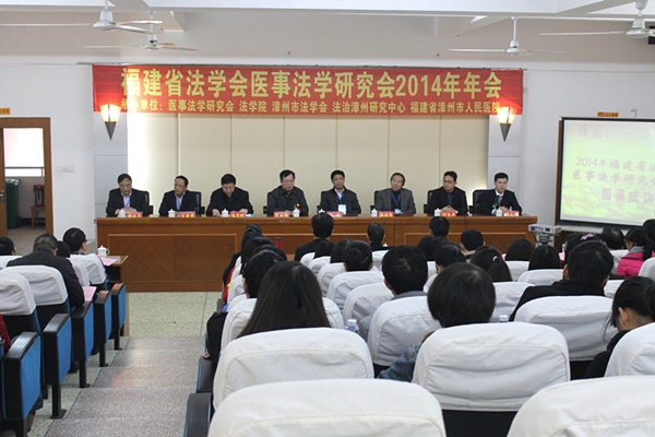 由福建省法学会医事法学研究会主办,闽南师范大学法学院、漳州市法学会、福建省漳州市医院、法治漳州研究中心承办的福建省法学会医事法学研究会2014年会于2014年12月27日至28日在闽南师范大学召开。闽南师范大学肖庆伟副校长到会致辞、省委政法委委务会议成员、省法学会专职副会长张琦同志出席会议并讲话,闽南师范大学法学院院长何东平教授致欢迎词,漳州市政法委副书记陈青树同志,省法学会医事法学研究会会长、福建中医药大学蔡建鹰教授等有关单位领导参加了会议。