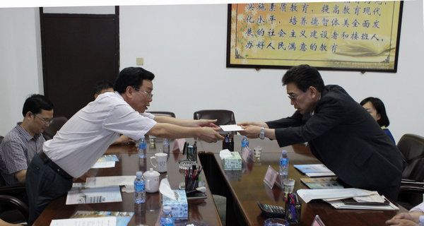 杉江实郎代表校方向李进金校长递交访问邀请函