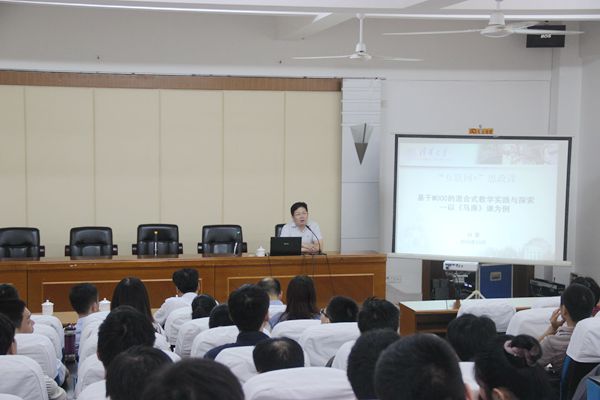 刘震副教授首先阐述了MOOC(massive open online courses大规模开放在线课程,中文称之为慕课)产生的背景,他说在当今的互联网时代,学生的学习环境、学习行为、教学模式、教育理念都有着大不同的变化,为着提高教学质量这一核心理念,教师作为知识的传播者,除了本身具备的学科知识、教学法知识的储备外,还应与技术知识进行融合。而慕课正是“互联网+”教育的产物。他还以《马克思主义基本原理》为例,简要概述MOOC(慕课)在教学实践上的探索历程。从传统单一的课堂教学、采用人人墙技术提高学生的学习自由度再到应用慕课结合线下讨论、辅导及笔试的教学实践。实践证明MOOC(慕课)有利于实现以“教”为中心和以“学”为中心辩证统一。与此同时,他也指出MOOC(慕课)作为一个教学工具,不是目的,既不能过度夸大它在知识传播方面的深度,也不能过于不屑它在知识传播方面的广度和时效性,传统课堂教学不会被推倒,但结合MOOC(慕课)的混合式教学(线上教学与线下教学相结合)才是今后的发展方向。