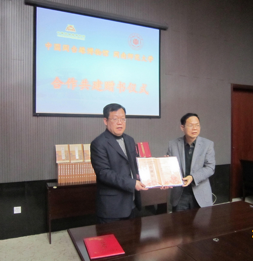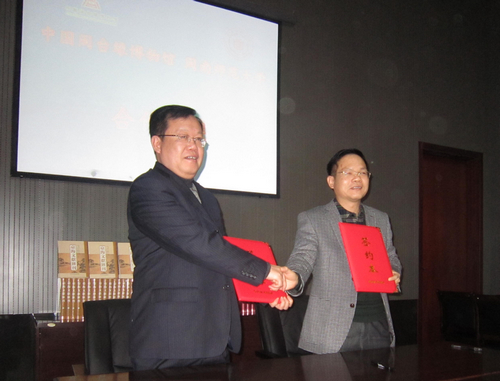 肖副校长首先与中国闽台缘博物馆党委书记黄籴问签订双方共建协议,并向该馆赠送《台海文献汇刊》《闽南涉台族谱汇编》等两套大型资料丛书。双方表示将在学术研究、文化交流、信息互通、资料共享、干部学习培训等方面进行合作,共同推进两岸文化交流,推动两岸关系和平发展。