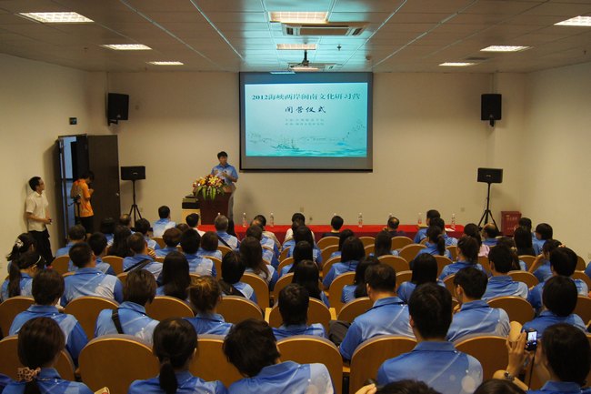 2012海峡两岸闽南文化研习营活动由漳州师范学院主办,闽南文化研究院承办,于7月26日开营,历时12天。营员来自台湾成功大学、中央大学、台南大学、金门大学、明道大学、屏东教育大学等台湾6所高校师生,以及漳州师院师生代表等共130多人。活动期间,营员们在漳州、泉州、厦门三地,通过听取专题讲座、交流座谈、参访考察等活动,感受闽南文化的魅力,领略闽南的风土人情和民俗文化。