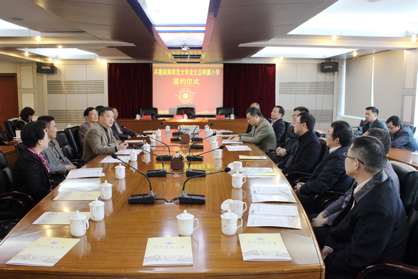 1月21日下午,闽南师范大学龙文区附属小学共建协议签约仪式在我校逸夫楼三楼会议室举行。校领导林晓峰、吴彬镪、李顺兴、蒋一婷,龙文区领导欧龙光、侯为东、叶明义、李亚树,漳州特房开发有限公司领导黄偏明、吕金纯、钟亚良、谢志雄、罗旭铭以及共建三方相关部门负责人出席了签约仪式。
