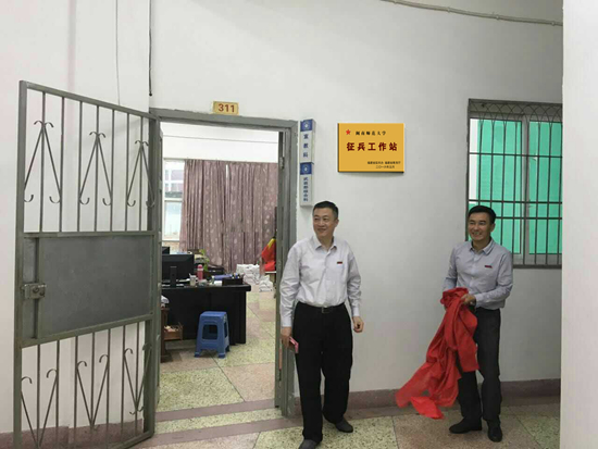 为进一步加强征兵工作组织领导,省教育厅、省征兵办在我校挂牌成立闽南师范大学征兵工作站。5月16日下午,校党委林晓峰书记、吴彬镪副书记为征兵工作站揭牌,校长助理林静华参加揭牌仪式,同时任命校学生工作处处长、人民武装部部长林致远为征兵工作站站长。