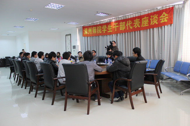 3月1日下午,我校在逸夫图书馆五楼会议室召开校领导与学生干部代表座谈会。校党委林晓峰书记、林春生副书记与来自校学生会、校青年志愿者中心、校青年宣传中心、校勤工中心等九个校级学生组织的学生干部代表进行了亲切交谈。学生处、团委等部门负责人出席了座谈会。
