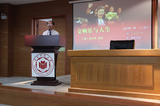 讲座伊始,文学院院长黄金明对郑小瑛教授进行了简单介绍。郑教授不仅拥有深厚的文化修养与造诣,更是具有高远的文化理想和使命感,对音乐文化的热爱和信心使得她更具魅力,透露着一种无与伦比的大气与淡定,那正是她的大家风范。