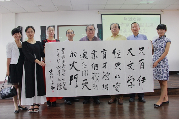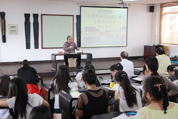11月22日上午9点,中国作家协会党组成员、书记处书记、副主席,鲁迅文学院院长吉狄马加应邀在博东406为我校师生讲学。校党委书记林晓峰、福建省文联副主席陈毅达及文学院班子领导向其介绍了学校及学院的发展概况,并陪同参观了校园及古琴教室。