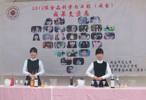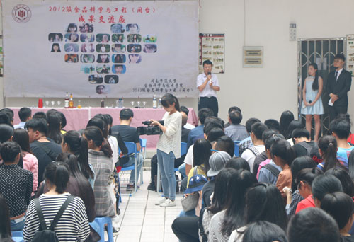 为检验2012级食品闽台班在台一年学习成果,11月12日下午两点,以“食在两岸”为主题的“2012级食品闽台班成果交流展”在达南一楼拉开帷幕。校党委吴彬镪副书记与台湾明道大学特邀嘉宾、招就处、海外教育学院、校团委领导及生科院师生一起参加了此次活动。