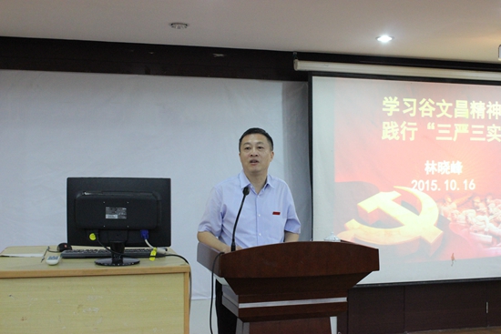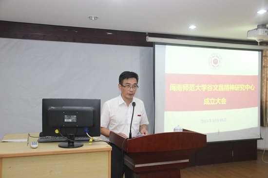会上,校党委书记林晓峰作了题为《学习谷文昌精神 践行“三严三实”》的专题报告。马克思主义学院院长陈再生教授作《关于成立谷文昌精神研究中心的筹备工作报告》,科学技术处(社会科学处)处长陈国良宣读了《闽南师范大学学术委员会关于成立谷文昌精神研究中心的批复》。