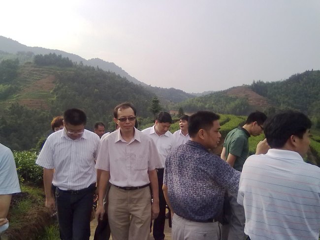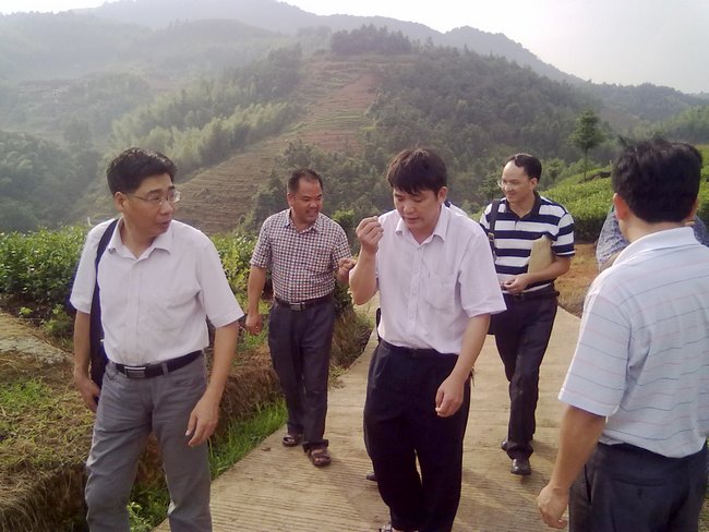 湖林乡领导和大坪村相关人员陪同了调研组视察生态茶园长势情况