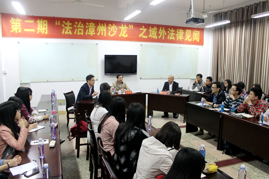 3月29日晚,由法学与公共管理学院、法治漳州研究中心举办的第二期“法治漳州沙龙”之《域外法律见闻》在博文楼西区106室如期举行。本次沙龙邀请了漳州市中级人民法院副院长王文平、龙海市人民检察院检察长周跃武担任报告人,法学与公共管理学院院长何东平教授主持了沙龙。