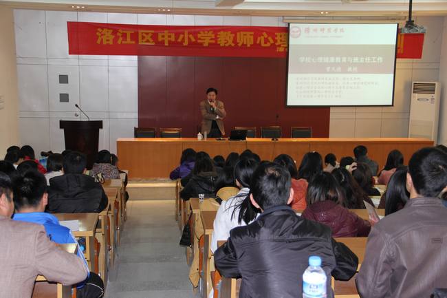 12月23日上午,漳州师范学院洛江创新实验区中小学教师心理健康教育培训在洛江区教师进修学校举行。本次培训旨在进一步深化新课程改革实验,加强洛江区中小学教师心理健康教育,促进教师与学生的健康沟通。此次培训共有来自洛江区各中小学100多名在职教师参加。我校教育系曾天德、王希华和阳莉华等老师以丰富的教学经验、专业的心理健康知识和幽默风趣的语言博得了台下听课教师的一致好评。