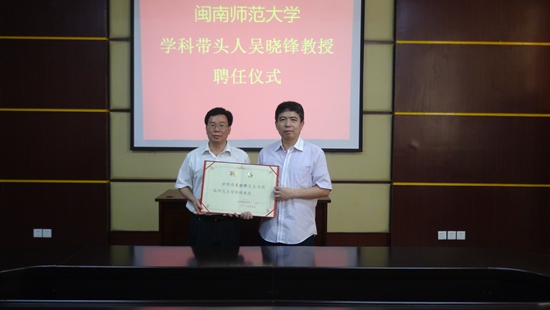 为进一步实施人才强校战略,推动我校学科建设和发展,2013年我校出台《关于引进高层次人才的若干规定》,为省级重点一级学科领军人才、创新平台、创新团队带头人等设立10个特聘教授岗。近期,我校成功引进了吴晓锋教授作为数学与统计学院省级重点学科带头人。5月29日我校举行聘任仪式,校长李进金教授出席并为吴晓锋教授颁发特聘教授聘书。