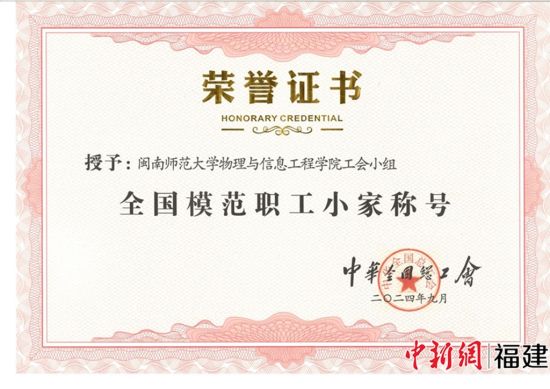 中新网福建新闻2月7日电(陈丽新 方琼) “家”的温度,是凝聚人心的基石;“小家”的力量,能汇聚成推动发展的洪流。在闽南师范大学,基层工会建设正以“建家”为抓手,用真情与实干描绘出一幅幅温馨而有力的新画卷。其中,物理与信息工程学院(简称物信学院)被老师们亲切地称为“我们的小家”。这个“小家”,不仅是全院教职工心中温暖可靠的“娘家”,更凭借其突出成绩——作为全校基层工会中唯一先后荣获“全国教科文卫体系统模范职工小家”“全国模范职工小家”两项国家级荣誉的集体,成为了校工会推进小家建设、赋能基层治理的标杆典范,其生动实践值得我们深入探寻。