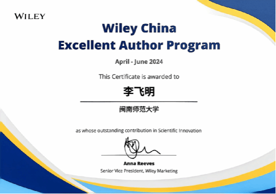 污染监测与控制福建省高校重点实验室教师获Wiley中国授予的荣誉称号